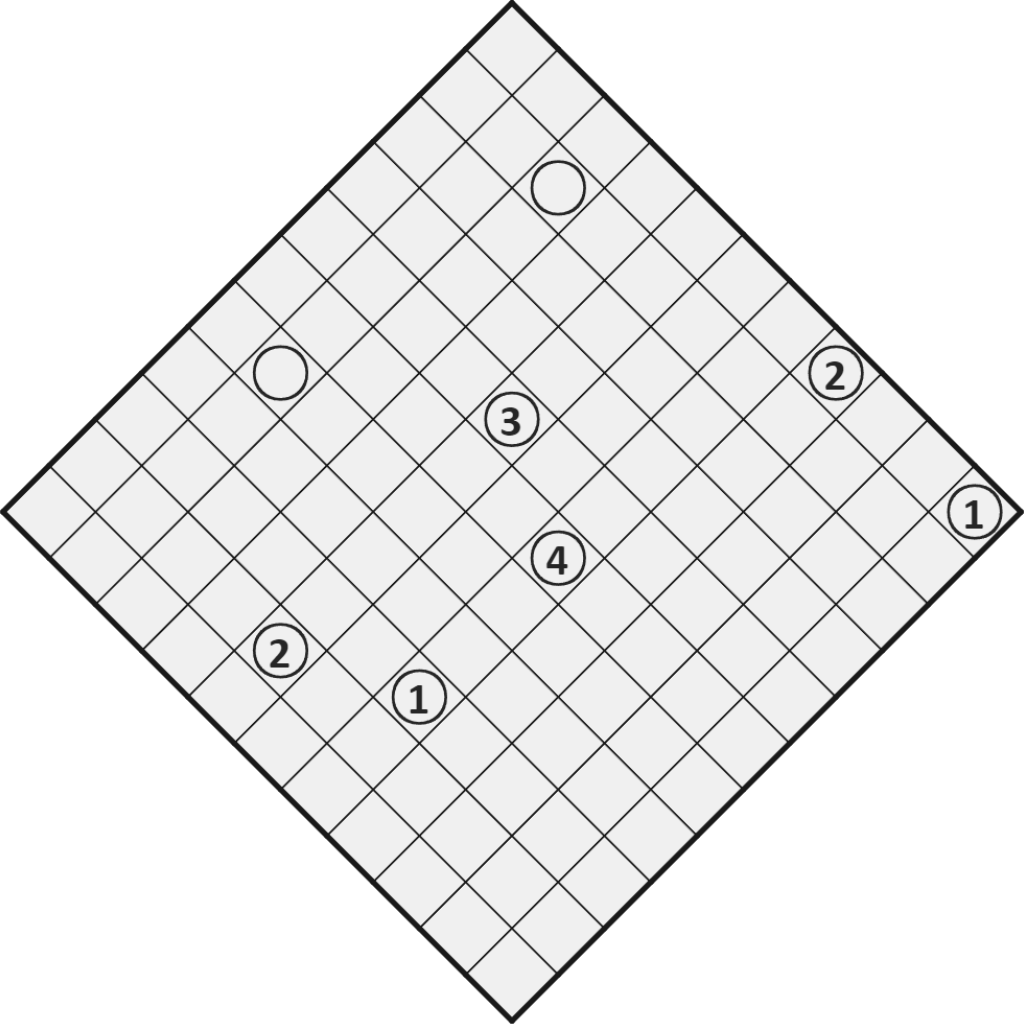 The 1-clue on the far right is one of those uniqueness issues I mentioned in the first post. It’s only needed to disambiguate that specific cell (and in fact, a numberless white circle would achieve the same), but in this case I don’t mind it, because it makes the solve path in that region of the grid a lot smoother.